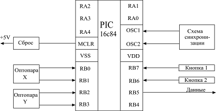 схема контроллера трекбола на основе микропроцессора PIC16C84;