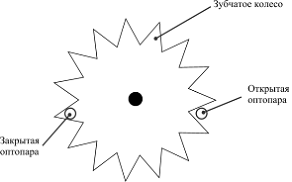 входит вращающийся диск с прорезями. Оптопары датчиков могут быть выполнены в