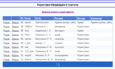 «редаг.» та «видал.», які дозволяють виконувати відповідні дії. Для зміни