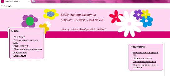 был создан Web-сайт для БДОУ «Центр развития ребёнка - детский сад №96» г.