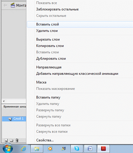 . Далее на вкладку "Слой 1" нажать ПКМ и выбрать