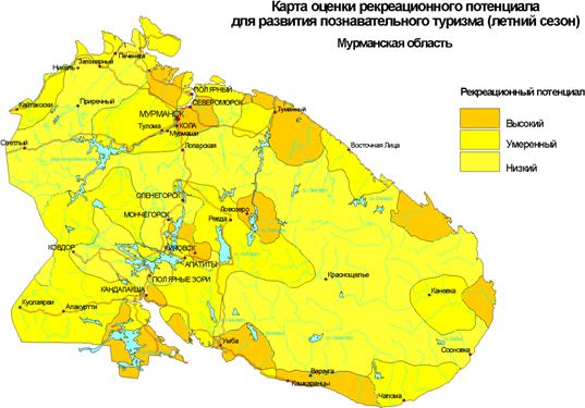 первичной оценки рекреационного потенциала Мурманской области направлены для