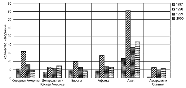 Бразилии, Австралии, Сомали, России и Румынии случилось более 10 в каждой. Но
