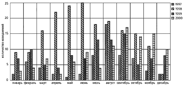 1997-1999 гг. 20 наводнений длилось более 30 дней.
