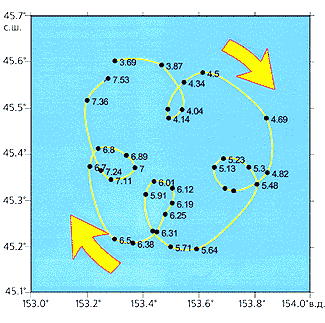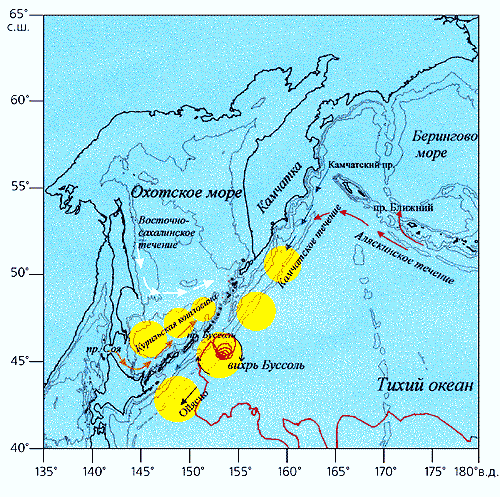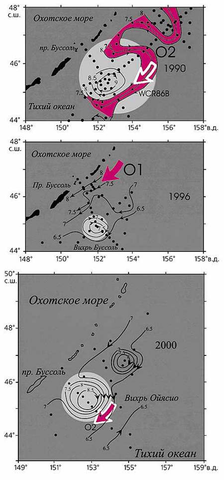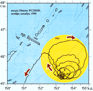 антициклонических вихрей Ойясио у пролива Буссоль. В 1990 г. у пролива