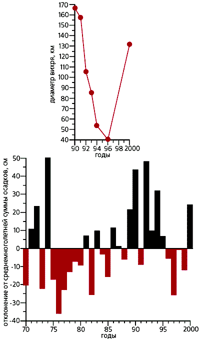 за рост суммы осадков в 1989-1991 гг. и в 2000-м. Нужно отметить, что