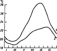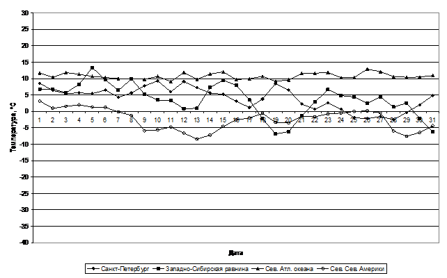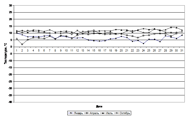 ход температуры воздуха в приземном слое в течение года, выявить причины её