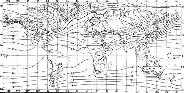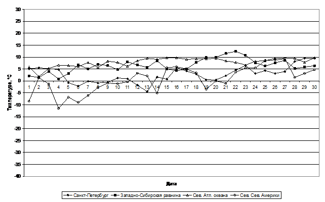 Температура в апреле в разных частях Земли (60° с.ш.)