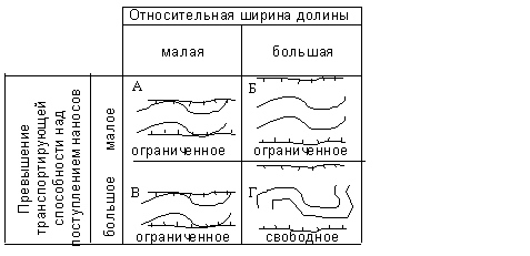 меандрирование разделяется на ограниченное и свободное; на рисунке 1 показано,