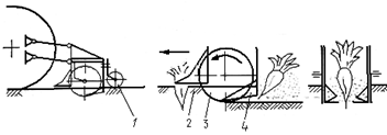 засоби, що рухаються поруч з агрегатом. Такі валки коренеплодів утворюються