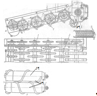 транспортером 2 переміщує їх вгору. Притискний верхній транспортер 5 запобігає