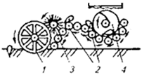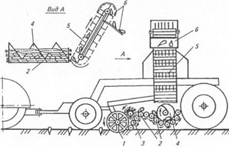 транспортер 4 підбирає валок коренеплодів і при взаємодії приймальним