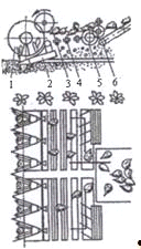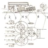 пристрій копіюючий; 4- транспортер підбираючий; 5- транспортер верхній