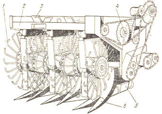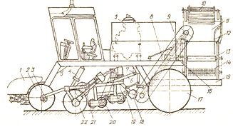 ведучих коліс;14-шасі; 15- транспортер поздовжній; 16-рама живильника;
