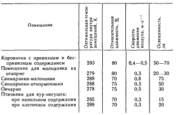 и птицы сводятся в основном к поддержанию внутри помещения нормируемых