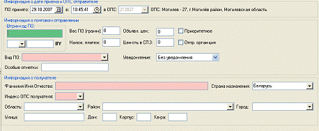 ) Дату и время приема ПО (индекс ОПС ставиться автоматически),