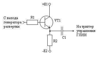 транзистор ГЛИН был открыт, а времязадающая емкость разряжена. С помощью цепи