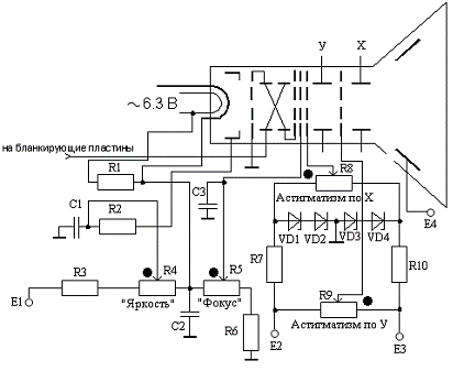 регулировки полярности и уровня синхронизации, яркости изображения ЭЛТ,