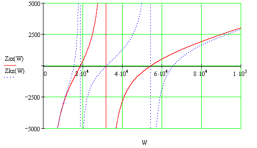 четырехполюсника; графики частотной зависимости сопротивлений холостого хода и