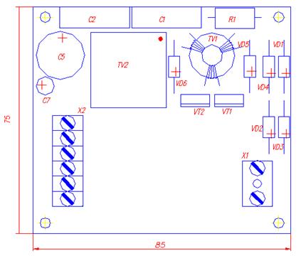 радиоэлектронные элементы, включая трансформаторы, а с другой - стабилизатор