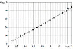 дБ, діапазон вхідних сигналів 0,1 - 10 В, максимальна амплітуда вихідного