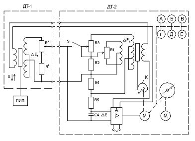 Последний, вращая кулачок К, будет перемещать сердечник катушки ДТ2