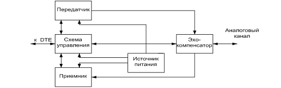 обозначается в схемах как С2, а стык модема с каналом − как С1.