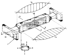 силы Кориолиса вызывают колебания стержня в плоскости XZ с линейными скоростями Vx каждого элемента. Для измерения этих