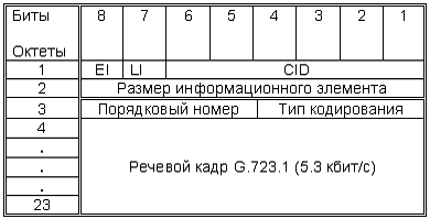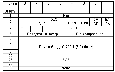 алгоритм G.723.1 (ACELP; 5,3 кбит/c), обладающий наиболее выгодным соотношением качество речи / скорость