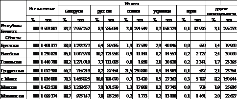 национальностей. Белорусы составляют 83,7% населения. Доля остальных
