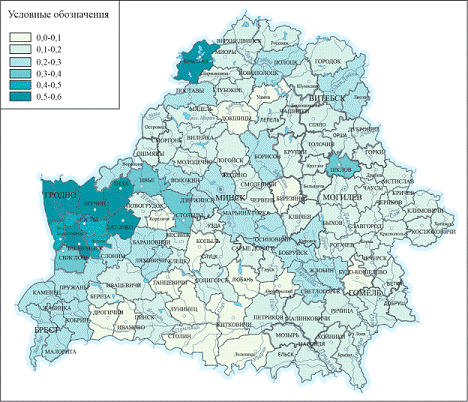 в западных районах Гродненской, Витебской и Минской областей, украинцев в южных