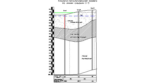 геолого-литологического разрез по линии 1-3 скважин определили, что после