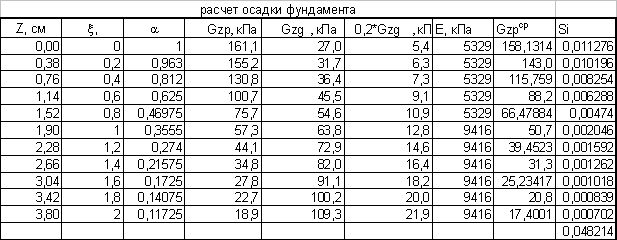 вероятной осадки свайного фундамента.