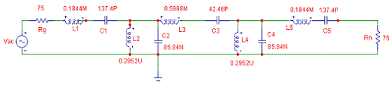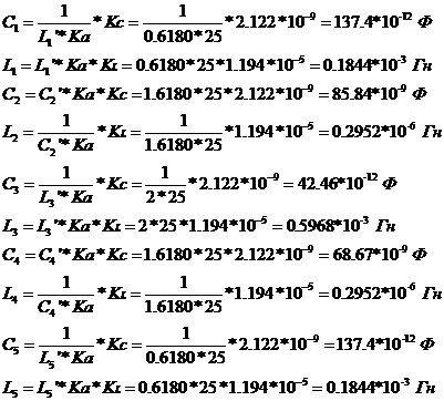 5-го порядка возьмём из таблицы в справочнике по расчёту фильтров Р. Зааля: C1‘= 0.618; L2‘=1.618; C3‘=2.000;L4‘=1.618; C5‘=0.618.