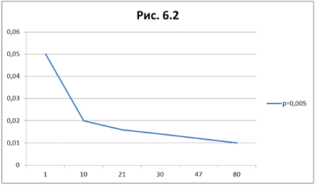 отриманої довжини блоку побудувати графік розподілу імовірностей кратності