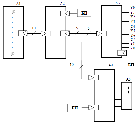 осуществляется платой кодопреобразователя в виде десятичной цифры 7-ми