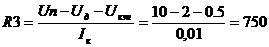 .Зная, что Iк=1мА и Uп=10B, рассчитываем R3 по формуле: