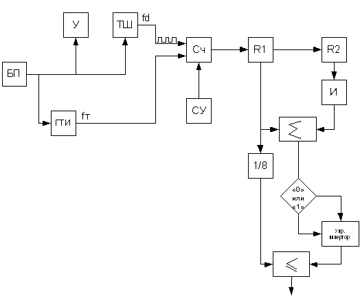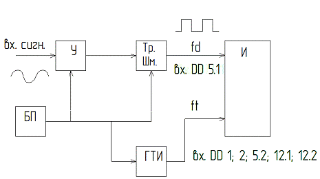 триггер Шмидта; БП - блок питания; ГТИ - генератор тактовых импульсов; И -