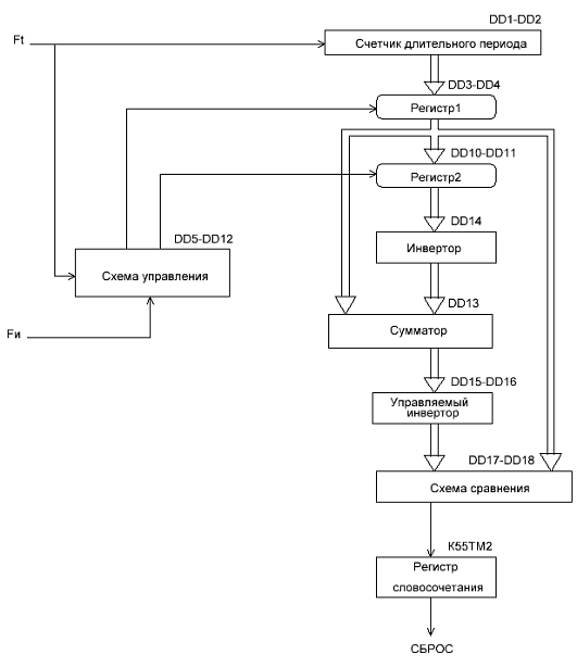 Тактовый сигнал Ft поступает на счётный вход С счётчика DD1 и DD2, а также на вход С
