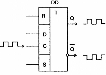 Этот же сигнал поступает на информационный вход D триггера DD5.2, который при приходе