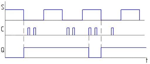 положительного фронта информационного сигнала. Эта 1 поступает на вход С