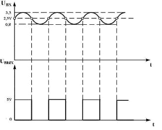 Измеряемый сигнал пройдя через усилитель и триггер Шмидта