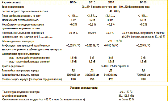 Таблица 5.4. Выходные параметры блоков питания серии БП15