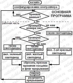 алгоритм работы микроконтроллера, выбран микроконтроллер удовлетворяющий