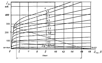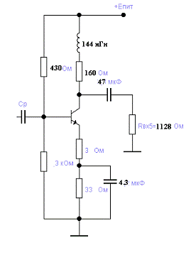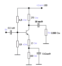 коэффициентом усиления Кi=9,оконечный каскад будет выполнен по схеме эмитерного