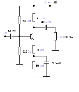 - по схеме ОК (эмиттерного повторителя). В данном