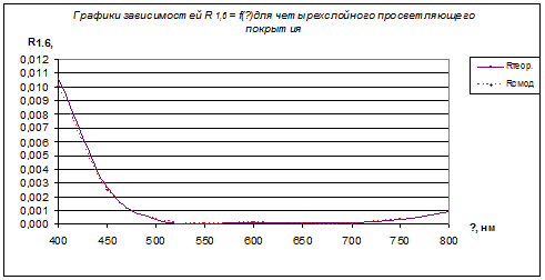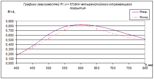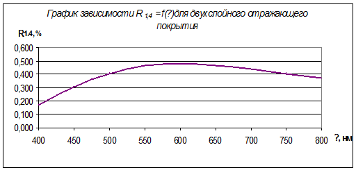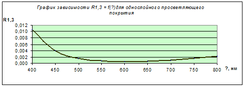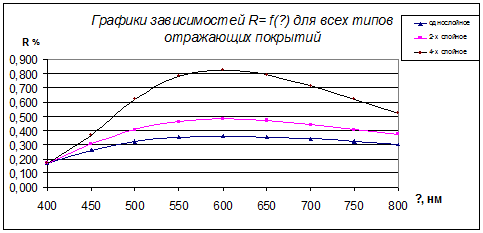 отражающего покрытия построим графики спектральных зависимостей R= f(л) для