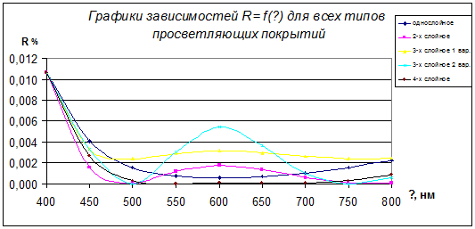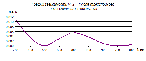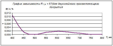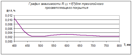 многослойного просветляющего покрытия с минимальным коэффициентом отражения для