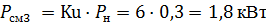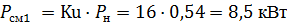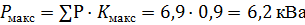 ∑P=6,3+0,7+0,54+0,4=7,9 кВт