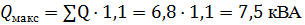 ∑Q=6,3+0,3+0,54+0,7=7,84 кВА